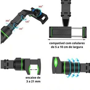 Suporte articulado com rotação 360 graus, braçadeira de liberação rápida, ajuste de largura, montagem no espelho retrovisor, compatível com telefones de 50-100mm de largura.Vendido e entregue por Olist Top