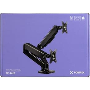 Suporte Articulado Para Dois Monitores Com Pistão A Gás Fortrek Fk 441s 17"-32" O Suporte Articulado Para Dois Monitores de Mesa da Fortrek oferece uma solução avançada e versátil para otimizar seu espaço de trabalho com eficiência e conforto. Equipado com um pistão a gás para ajuste suave, este suporte garante uma transição fácil entre diferentes alturas, permitindo uma experiência personalizada e ergonômica. Com suporte para telas de 17 a 32, este sistema é projetado para acomodar uma ampla gama de monitores, proporcionando flexibilidade na disposição do seu ambiente de trabalho. Além disso, a capacidade de suportar dois monitores de até 9 kg cada garante uma configuração dupla sem comprometer a estabilidade.