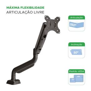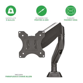 O suporte PX-F80M é uma solução prática e ergonômica para quem utiliza um monitor LED/LCD de 10 a 35 polegadas. Com sistema de pistão a gás, ele permite movimentos mais suaves e precisos, oferecendo inclinação de até 90 graus e articulação de 360 graus para ajuste ideal da posição de trabalho. Compatível com o padrão VESA, o suporte é robusto, suportando até 9 kg. Sua estrutura atende à NR17, proporcionando conforto e ergonomia. Especificações Técnicas: - Modelo: PX-F80M - Compatibilidade: Monitores de 10 a 35 polegadas - Padrão VESA: 75 x 75 e 100 x 100 - Capacidade: Suporta até 9 kg - Inclinação: Até 90 graus - Articulação: 360 graus - Pistão a Gás: Movimentos suaves e precisos - Ergonomia: Atende à Norma Regulamentadora NR17 - Conteúdo da embalagem: 4 parafusos M4 x 12 mm 4 parafusos M5 x 12 mm 1 parafuso M6 x 12 mm 1 parafuso M8 x 20 mm Chaves allen para montagem - : 5 anos Marca: Não Informado