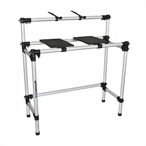 O Rack DJ Titanium Racks é o Suporte Bancada Ideal para Hard Case, conta com 2 bandejas fabricadas em MDF revestido em EVAPara equipamentos CDJs e Mixer Em Case. Além de contar com barra em "L" para Notebook.