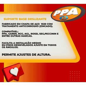 Instalação simplificada: Dispensa base de alvenaria Regulagem de altura: Ajustável entre 80 a 150 mm Compatibilidade: Furação universal para diversos automatizadores Material resistente: Fabricada em chapas de aço com tratamento antiferrugem Estabilidade: Acompanha duas cantoneiras de reforço