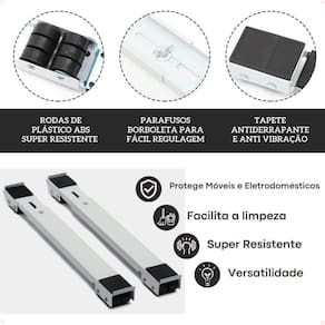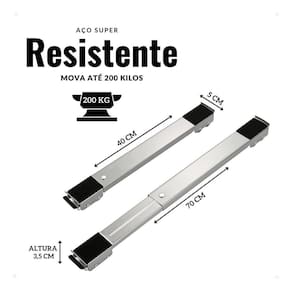 O Suporte Base Rodinhas Carrinho Ajustável Geladeira Fogão é perfeito para quem deseja mover móveis e eletrodomésticos pesados de forma prática e fácil. Com material super-resistente e discreto, esse suporte com rodinhas permite que você altere a posição dos móveis para limpar ou encaixar em locais difíceis. Esse suporte é ajustável, podendo variar de 40 cm até 70 cm de tamanho, o que o torna fácil de usar e se adapta às suas necessidades. Além disso, possui travas que garantem a segurança do eletrodoméstico ao movimentá-lo. Feito em aço resistente e reforçado, esse suporte é capaz de suportar até 200kg, garantindo durabilidade e segurança. Sua instalação é simples e rápida, e sua base antiderrapante e anti vibração evita danos aos móveis e eletrodomésticos. Com o Suporte Base Rodinhas Carrinho Ajustável Geladeira Fogão, você também protege seus eletrodomésticos e móveis contra a água da limpeza, evitando ferrugem e estragos nas madeiras. Especificações técnicas: - Suporta até 200kg - Material: aço carbono, plástico e eva - Cor: - Dimensões do produto: mínima: 3,5 cm x 40cm x 5 cm máxima: 3,5 cm x 70 cm x 5 cm - Peso do produto: 1,40 kg Aguardamos seu pedido do Suporte Base Rodinhas Carrinho Ajustável Geladeira Fogão. Caso tenha alguma dúvida, estamos à disposição para ajudar. Marca: Não Informado