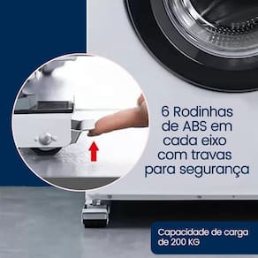 Sim, o suporte foi projetado para facilitar a movimentação de eletrodomésticos pesados. Com as rodinhas resistentes e o sistema de travamento, você poderá movimentar seus aparelhos com tranquilidade e segurança.