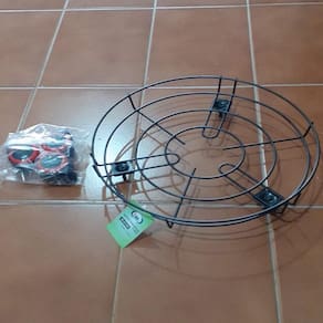 - Medidas do Produto: Diâmetro: 33 cm, Altura: 10 cm com as rodinhas instaladas - Com 3 Rodinhas - Material: Metal - Diâmetro interno: 31 cm