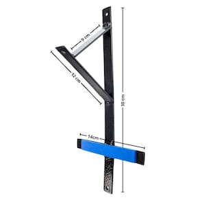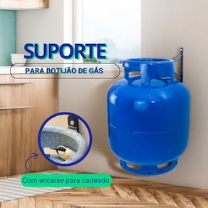 SUPORTE PARA BOTIJÃO DE GÁS DE PAREDE Suporte discreto e resistente, evita manchas no chão, facilita a limpeza e possui espaço para cadeado. BENEFÍCIOS: - Evita ferrugem e acúmulo de sujeira; - Facilita a limpeza sem precisar mover o botijão; - Reduz abrigo de insetos; - Possui trava antifurto. CARACTERÍSTICAS: - Comprimento: 30 cm; - Outras hastes: 9 cm, 12 cm e 14 cm; - Cor: Preto (suporte) e Azul (EVA de proteção); - Suporta até 30 kg. CONTEÚDO DA EMBALAGEM: - 1 Suporte; - 2 Parafusos; - 2 Buchas. OBSERVAÇÕES: - Fixação recomendada a 30 cm do chão; - Pode ser molhado; - Certifique-se da firmeza da instalação.