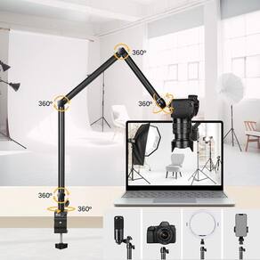 Suporte Braço Articulado Mesa para Câmera DSLR, Celular, LED Cor: preto Suporte Articulado de Mesa 1/4 com Morsa - Para Câmera, Celular, Webcam e Iluminação O Suporte Articulado de Mesa Aj Som foi desenvolvido para elevar câmeras, celulares, webcams e iluminadores com estabilidade e praticidade. Ideal para gravações, lives, fotografia, videochamadas e setups de estúdio ou home office, ele ocupa pouco espaço e oferece ajustes precisos para diferentes ângulos. Fabricado em alumínio, é leve, resistente e suporta equipamentos de até 2 kg, garantindo segurança mesmo em uso prolongado. A morsa com abertura de até 6 cm permite fixação horizontal ou vertical em diversos tipos de mesa. Principais Benefícios: - Articulação em múltiplos pontos para ajustes rápidos e precisos - Instalação simples e segura com morsa C-Clamp - Compatível com câmeras DSLR, webcam, celular, ring light e acessórios com rosca 1/4 - Estrutura leve e portátil, ideal para estúdios compactos - Economiza espaço na mesa e melhora a organização do setup Especificações Técnicas: - Braços articulados: 40 cm + 30 cm + 30 cm - Abertura máxima da morsa: 6 cm - Compatibilidade: Rosca padrão 1/4 com cabeça esférica metálica - Capacidade de carga: até 2 kg - Material: Alumínio - Cor: Preto - Marca: Aj Som Acessórios Musicais Indicado para: - Lives e transmissões - Fotografia e filmagem - Aulas online e videochamadas - Produção de conteúdo YouTube, Reels, TikTok - Estúdio caseiro e home office - Suporte extra para iluminação ou microcâmera Conteúdo da Embalagem: - 1 Suporte articulado de mesa com morsa - 1 Adaptador 1/4 com metálica Observação: Não acompanha aparelhos eletrônicos câmera, celular, webcam, ring light etc. . Marca: Não Informado