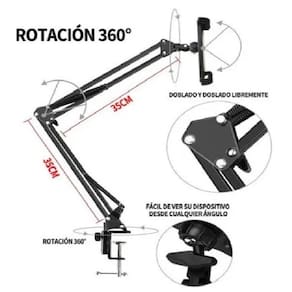 Este braço articulado tem a rotação de 360 da sua base, é flexível e pode ser ajustado no ângulo necessário, esse braço articulado é ideal para a instalação em mesas em casa, escritório ou seu estúdio.