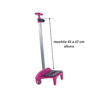 Suporte carrinho avulso mochila mala 1 T haste aluminio 45cm Cor: ROSA Adapte a mochila de costa no carrinho tornando mais fácil o transporte sem prejudicar a coluna com tantos livros e cadernos. Feito de alumínio e plástico resistente pode ser adaptado facilmente tendo uma ferramenta PHILIPS para apertar os parafusos das placas. Podendo se adaptados em malas ou caixas respeitando o peso de até 7kg e medidas do produto sem as variações pois se trata de encaixe sem regulagem.