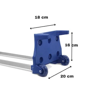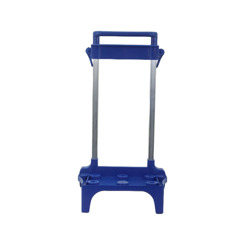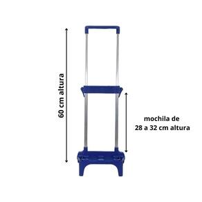 DESCRIÇÃO: Suporte para mochila escolar grande com 30 cm com rodinha de silicone e alça de alumínio.