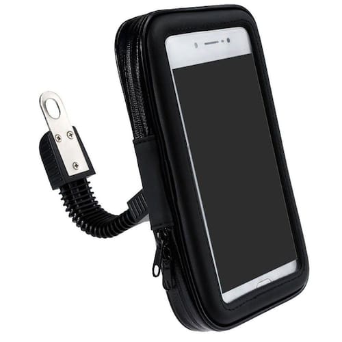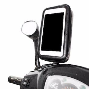 O suporte de fixação de retrovisor do moto para smartphones é perfeito para ciclistas e motociclistas que precisam estar conectados aos seus smartphones. A partir de agora, usar aplicativos de geolocalização como google maps e waze e ouvir música ficará muito mais fácil. O suporte é a proteção perfeita para os smartphones. Ele conta com uma película frontal transparente, que permite aos usuários ter total acesso à tela do aparelho mesmo em dias de chuva. A fixação do suporte é feita no retrovisor do moto por meio de uma haste flexivel. Ele possui haste flexível para ajuste de posição. O estojo protetor e a braçadeira são feitos em plásticos de alta resistência, para que o smartphone fique bem protegido contra queda e ação do tempo.