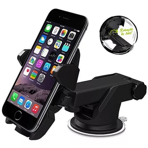 A fixação é feita por uma ventosa de silicone altamente aderente, que pode ser colocada tanto no vidro quanto no painel. Os ajustes possibilitam que o usuário customize o posicionamento da maneira que desejar, deixando o suporte na posição mais confortável e mais fácil de visualizar.