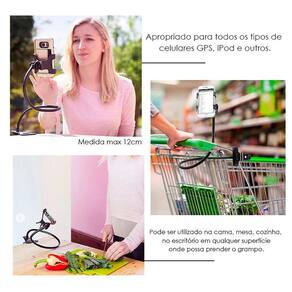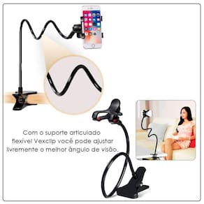 Suporte universal articulado com haste de 63cm e grampo com abertura máxima de 12cm. Giro 360 graus. Ideal para camas, mesas, escritórios e outras superfícies onde o grampo possa ser fixado.Vendido e entregue por Olist Top