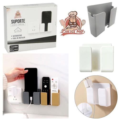 Suporte autoadesivo para celular de parede. Ideal para organizar e manter o celular acessível. Fácil instalação sem necessidade de furos.Vendido e entregue por Olist Top