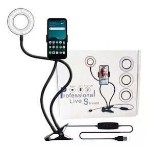 Suporte celular ring light usb luminária led para youtubers Descrição Solução ideal para você que fica até tarde estudando, trabalhando, fazendo lives ou vídeos. O ring light profissional mais vendido nos market places está com um proço mais que especial enquanto durarem os estoques. Ring light completo suporte celular maquiagem live stream youtuber