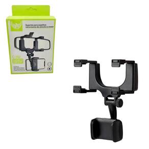 Suporte multifuncional para telefone para espelho retrovisor. Use seu smartphone com segurança no espelho retrovisor. Este suporte de telefone prenderá seu telefone com segurança com confiança e sem dificuldades. Fácil de instalar, e com rotação 360º, para atender às necessidades de diferentes linhas de visão. O celular pode ser fixado na posição vertical e horizontal, não cai na trepidação nas ruas desde que encaixe-o bem, deixando bem fixado.