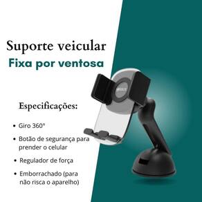 O suporte veicular acompanha 1 unidade e é compatível com a maioria dos smartphones disponíveis no mercado. Com ele, você terá a garantia de um produto de qualidade, sendo que todos os nossos produtos possuem garantia de 30 dias.