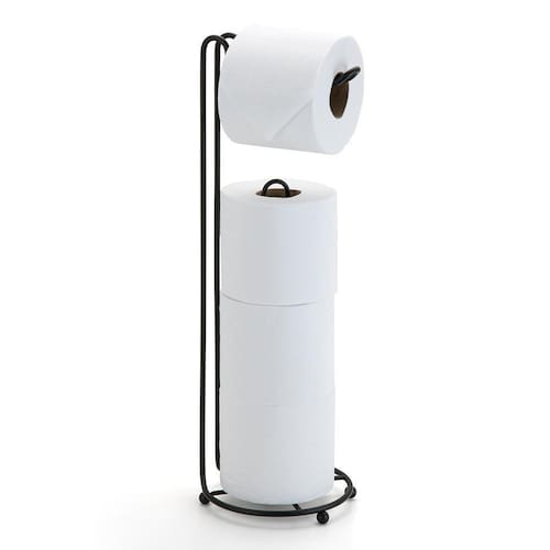 Suporte Chão P Papel Higiênico Triplo Black O Suporte para Papel Higiênico de Chão é uma ótima opção para não furar a parede. Este modelo possui a praticidade de acomodar 1 rolo em uso e 2 rolos de papel reserva. Este suporte para papel higiênico foi desenvolvido em aço carbono, que proporciona um design moderno, e é revestido por uma camada extra de um protetivo especial, Rust Free, que resulta em uma resistência maior contra ferrugem.Altura- 0,18Largura- 0,24Comprimento- 0,30