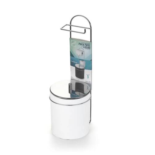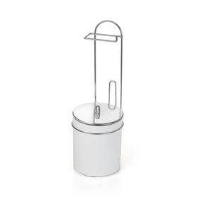 Suporte de Chão Arthi Premium (1245) - Porta Papel e Lixeira com Tampa Inox O Suporte de Chão Arthi Premium oferece uma solução 2 em 1 elegante e funcional para o seu banheiro ou lavabo. Este acessório combina um porta papel higiênico com uma lixeira integrada, otimizando o espaço e garantindo um visual clean. Características Físicas e Funcionais: Funcionalidade 2 em 1: Combina um porta papel higiênico vertical com uma lixeira integrada na base, essencial para banheiros. Design de Chão: Dispensa qualquer tipo de instalação na parede, sendo totalmente portátil e fácil de reposicionar. Acabamento Premium: Fabricado em Aço Inox, um material de alta resistência à umidade e corrosão, com acabamento BCO (Branco) na estrutura, conferindo durabilidade e sofisticação. Lixeira com Tampa: A lixeira possui tampa, contribuindo para a discrição e higiene do ambiente. Marca: Arthi (Ref. 1245). Especificações Técnicas: Material: Aço Inox (Tampa e detalhes) e estrutura BCO (Branca). Dimensões: Comprimento 26 X Largura 19,5 X Altura 55,1 cm