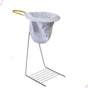 Material: - Suporte: aço cromado - Coador: malha 100% algodão, aro e cabo de arame galvanizado