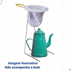 Feito em aço cromado de alta qualidade, o suporte possui medidas de 13 cm de diâmetro, 31 cm de altura e 15 cm de largura. Já o coador é confeccionado em malha 100% algodão, com aro e cabo de arame galvanizado, garantindo durabilidade e resistência.