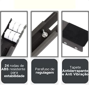 Especificações Técnicas: - Suporta até 200kg - Material: aço carbono, plástico e EVA - Cor: preto - Dimensões mínimas A x P : 3,5cm x 40cm - Dimensões máximas A x P : 3,5cm x 69cm - Largura do produto: 5cm - Dimensões da base L x P : 5cm x 7cm - Peso do produto: 1,40kg