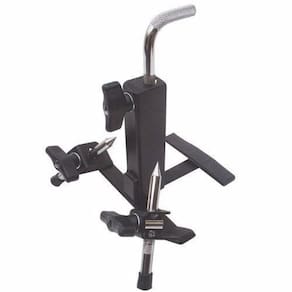Especificações técnicas: - Material: Metal e borracha - Altura: Haste ajustável de 15 a 23cm - Diâmetro da haste: 1cm - Pés duplos: Borracha ou ponta de metal - Cor: Preto / Cromado - Peso: 900g - Fabricante: Torelli - Modelo: TA-427