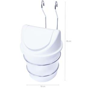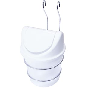 Nem sempre a gente quer largar aquele lixinho em cima da pia, seja por falta de espaço ou por questão de preferência. Esse suporte acompanha uma lixeira de capacidade de 3,5 litros, tampa aberta manualmente facilitando a abertura do lixo só quando necessário. Ideal para trazer um toque de praticidade a sua cozinha, ou qualquer outro ambiente que necessite de organização. De encaixe em barra (barras adquiridas separadamente) evita que a lixeira vire e seu lixo caia. Abertura do gancho de encaixa é de 2cm. É uma peça de fácil encaixe, podendo ser pendurada em barra piatina ou tubular.