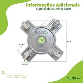 Descrição * O Suporte de Alumínio com 4 Rodas de Silicone ALPE E ARITANA (35cm) é a solução ideal para quem busca praticidade, resistência e mobilidade no manejo de vasos e objetos pesados. * Com estrutura em alumínio de alta durabilidade, o suporte oferece excelente sustentação, suportando até 150 kg, perfeito para vasos grandes, bombonas, galões e equipamentos diversos. * Suas rodas em silicone garantem um deslizamento suave e silencioso, evitando riscos no piso e facilitando o deslocamento em diferentes superfícies. * O design compacto e robusto proporciona estabilidade, enquanto o acabamento de qualidade assegura longa vida útil mesmo em áreas externas. * Ideal para quem deseja unir funcionalidade e estética, mantendo o ambiente mais limpo, organizado e com um toque moderno.