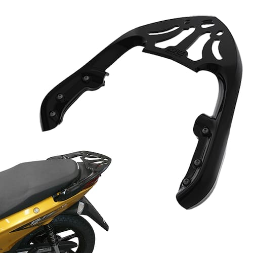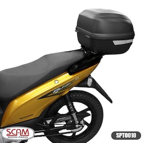 Loja Oficial Giro Moto PartsDesenvolvido para comportar baús superiores das principais marcas do mercado, o SUPORTE PARA BAÚ SUPERIOR SCAM em LIGA LEVE é robusto e possui design exclusivo, posicionando o baú superior com firmeza e respeitando o espaço do passageiro. Especificações:• Marca: Scam • Modelos compatíveis: Honda Biz 100 (2011 à 2017)• Capacidade: 10kg• Fixação: Utiliza fixação da alça da garupa, substituindo a alça• Material: Liga Leve• Cor: Preto Fosco• Tratamento de superfície contra corrosão