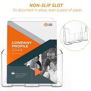 - Suporte antiderrapante com fenda e orifício (não inclui parafuso): o slot antiderrapante na parte inferior do organizador de bancada pode fixar o documento no lugar, até mesmo um pedaço de papel; o suporte de 2 furos pode fazer com que os suportes de marketing sejam fixados com segurança na parede.
