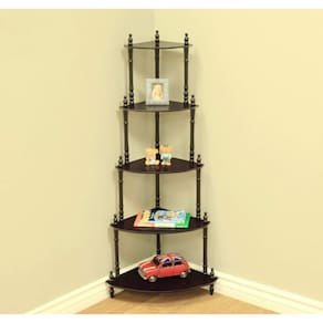 - Use como mesa de canto ou mesa de cabeceira. Madeira e madeira composta com um rico acabamento em cerejeira. Características O estilo tradicional faz com que esta prateleira de madeira pareça uma herança de família; use as 4 prateleiras para guardar itens decorativos, livros, jogos de salão e muito mais; todas as peças são feitas de madeira composta com acabamento em cerejeira escura; é necessária alguma montagem;