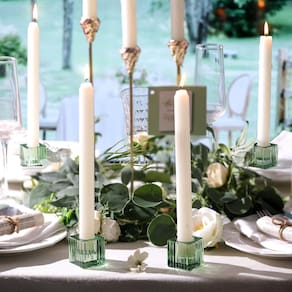 LETINE 12 peças de castiçais cônicos de cubo verde - suporte de vela ideal para mesas de centro de mesa de casamento modernas e decoração de férias, conjunto de castiçal elegante para ambiente doméstico - Cada castiçal mede 4 cm C x 4 cm L x 4 cm A com um orifício de 2,5 cm de diâmetro, projetado para segurar com segurança velas cônicas de tamanho padrão, tornando-as ideais para centros de mesa de casamento. - Versátil e elegante: estes castiçais são perfeitos para várias celebrações e eventos, como festas, aniversários, Natal, Halloween, aniversários, Dia das Mães, inaugurações de casa e casamentos. Eleve o ambiente com estes castiçais cônicos chiques e modernos. - Qualidade superior e durabilidade: os castiçais da LETINE são atóxicos, inodoros e ecológicos. Isso garante que eles ofereçam excelente estabilidade e segurarão suas velas cônicas com segurança, tornando-as uma escolha durável e confiável para qualquer entusiasta de decoração. - Design elegante e atemporal: o belo padrão listrado vertical, combinado com qualidade excepcional e design elegante, torna esses castiçais uma excelente escolha para fins de presente, adequados para qualquer ocasião, de aniversários a casamentos. - Presente atencioso: estes castiçais são uma adição atemporal e versátil a qualquer decoração, tornando-os uma escolha de destaque para aqueles que procuram adicionar um toque de charme a momentos especiais.