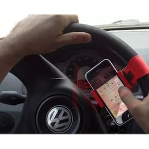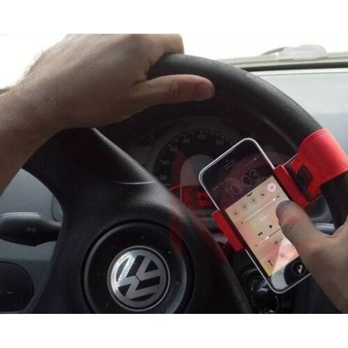 Suporte de celular para volante Modelo exclusivo que não atrapalha a visão como os modelos convencionais presos ao vidro. Serve para qualquer modelo de celular com largura máxima de 8,5cm Não use apenas no carro, use em academia ou no mercado, acoplando na bicicleta ou no carrinho de compras por exemplo. Muito prático e de fácil instalação. Informações técnicas Peso: 80 gramas Material: Elástico e plástico de alta resistência Abertura máxima: 8.5cm Abertura mínima: 4.5cm