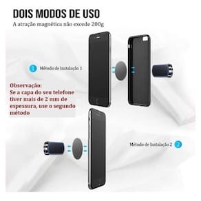 Instalação : Basta colar o imã no local onde deseja fixar o suporte e colocar o disco magnético por dentro da capinha do celular (Não é necessário colar o disco no celular), o celular ficará grudado no ponto instalado.