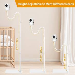 IMPORTANTE: Se for um produto elétrico, ele pode ser compatível com uma tomada de 110 volts. Se utilizado fora dos Estados Unidos, pode ser necessário um conversor de voltagem para garantir a operação adequada. Verifique se o produto que você está comprando é elétrico antes de considerar essas informações. Suporte de chão para monitor de bebê para HelloBaby, suporte de câmera de bebê com altura ajustável para HelloBaby - Ampla compatibilidade - O monitor de chão para monitor Hello Baby com orifício de rosca de 1/4" pode ser montado diretamente. O suporte para monitor de chão hello baby monitor é extra com 2 adaptadores que se adaptam a diferentes modelos, como: para HelloBaby HB40/HB6250/HB6336/HB6339/HB6351/HB6550/HB6550 Pro; para HelloBaby HB65/HB66/HB6081/HB66 Pro (Aviso: NÃO inclui os monitores). Por favor, verifique o modelo cuidadosamente antes da compra.) - Extra com bandeja e abraçadeiras: este suporte para monitor de bebê vem com uma bandeja versátil e abraçadeiras. A bandeja com clipe se fixa com segurança ao suporte, oferecendo armazenamento conveniente para itens como garrafas, lenços de papel ou brinquedos, mantendo-os facilmente acessíveis e bem organizados. As braçadeiras incluídas ajudam a arrumar cabos soltos ou muito longos, eliminando riscos de tropeçar e garantindo um espaço seguro e sem bagunça ao redor do monitor. - Altura ajustável - Personalize a altura do suporte de chão do monitor de bebê montando um número diferente de tubos de metal. A altura do suporte pode ser facilmente ajustada de 95 cm (34,84 polegadas) a 170 cm (67 polegadas), permitindo que você adapte a posição do monitor de acordo com suas necessidades variáveis e garanta o melhor ângulo de visão para o monitoramento ideal do bebê. - Design de ângulo flexível - O suporte para monitor de bebê para suporte de câmera Hellobaby possui um braço flexível de pescoço de ganso que permite que você dobre e ajuste facilmente a posição. Isso garante que você sempre tenha a visão perfeita do seu bebê, sem pontos cegos. O braço flexível permite que você alcance o ângulo de visão ideal, proporcionando tranquilidade ao manter o monitor focado exatamente onde você precisa. - Robusto e estável - O suporte para monitor de bebê da Hellobaby é feito de aço inoxidável de alta qualidade e silicone espessado, garantindo durabilidade e confiabilidade. O suporte de chão do suporte para monitor de bebê Hello possui uma base de metal resistente, oferecendo estabilidade excepcional para manter seu monitor seguro. As almofadas antiderrapantes sob a base protegem o piso contra arranhões enquanto melhoram o equilíbrio do suporte, evitando quedas acidentais.