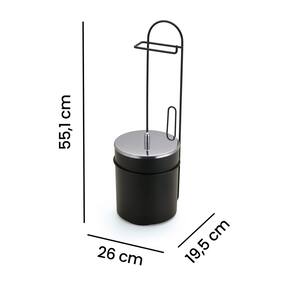 Suporte de Chão Arthi Black - Lixeira 5L e Porta Rolo com Tampa Inox O Suporte de Chão 2 em 1 da Arthi é a solução definitiva para organização compacta do banheiro, combinando funcionalidade com design elegante. Ele integra um Porta Papel Higiênico a uma Lixeira em uma única estrutura, eliminando a necessidade de furos e adicionando um toque de sofisticação com a Tampa em Aço Inox. Características Físicas e Funcionais: Design 2 em 1: Combina um suporte para o rolo de papel higiênico em uso com uma lixeira (capacidade ideal para banheiro), otimizando o espaço no chão. Estilo Premium: A estrutura em Aço Carbono com acabamento preto (Black) contrasta com a Tampa em Aço Inox, proporcionando um visual moderno e durável. Design de Chão: Totalmente portátil e estável, dispensa qualquer tipo de instalação na parede, sendo ideal para banheiros alugados ou reformados. Durabilidade: O corpo em aço carbono resistente é protegido pelo acabamento preto, enquanto o inox na tampa oferece alta resistência à corrosão e umidade. Marca: Arthi (Ref. 2518). Especificações Técnicas: Funcionalidade: Porta Papel Higiênico e Lixeira de Chão (com tampa). Cor: Preto (Corpo) e Inox (Tampa). Dimensões: Comprimento 26 X Largura 19,5 X Altura 55,1 cm. Material: Aço Carbono com Tampa em Inox.