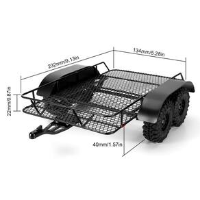 Especificações: Material do corpo: Metal Material das rodas: Nylon Material do engate do reboque: Alumínio Peso: 543 g (0,98 lb) Tamanho: 232 x 134 x 22 mm (9,13 x 5,28 x 0,87 pol.) Conteúdo da embalagem: 1 reboque de metal. 1 engate de reboque. - 543 g/cada, chassi de metal feito à mão para durabilidade, reboque aprimorado com engate de reboque de alumínio CNC. - Capaz de transportar qualquer veículo SCX24, AX24 ou de tamanho semelhante. - Eixos duplos para maior capacidade de reboque. - Rodas de nylon 1.0 autênticas para um visual realista. - Perfeito para eventos ou fotografia para mostrar sua configuração de RC. Observação: Para o engate de reboque do trailer: ele se fixa à estrutura. Se você tiver um Gladiador/Fecha/Bronco, o suporte do para-choque traseiro pode atrapalhar. Você pode precisar cortar as peças que interferem para um bom ajuste.