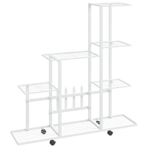 Este suporte de flores é feito de metal, que é resistente e durável, garantindo anos de serviço. Este rack de plantas oferece um espaço confortável para exibir suas lindas plantas. Além disso, as rodas facilitam a movimentação do suporte. Além disso, o rack é fácil de limpar com um pano úmido.