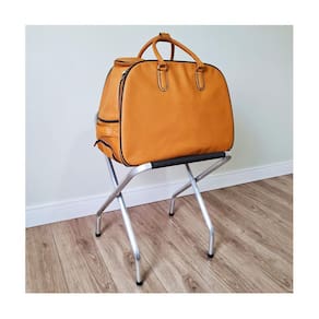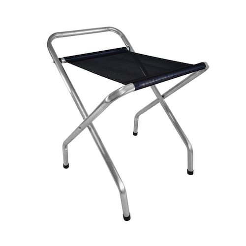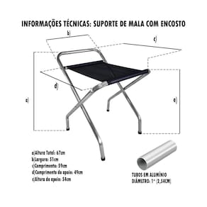Suporte para malas dobrável é prático e comporta diversas malas, tendo capacidade de 100kg. Deixa o ambiente organizado e mais bonito. Fabricado em alumínio, possui alta resistência e durabilidade. Ótimo para locais como hotel e pousadas.