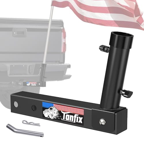 Suporte de mastro de bandeira de engate, suporte de mastro de bandeira resistente para engate de 4 cm, 2 modelos (furo único e furo duplo com design), suporte de bandeira para jipe, caminhão, SUV, trailer, campista - Construção resistente: Feito de materiais duráveis, totalmente metálicos, este suporte de mastro de engate garante força e estabilidade para uso duradouro, mesmo em condições climáticas adversas. - Serve para engate padrão de 4 cm: compatível com qualquer engate de reboque de 4 cm, tornando-o ideal para usuários de Jeep, caminhão, SUV, RV e campista que desejam exibir suas bandeiras com segurança em qualquer lugar. - Opções de modelo duplo: escolha entre o modelo de orifício único ou o suporte de mastro de bandeira de furo duplo, que apresenta um design exclusivo com a bandeira americana entre os dois furos. - Fácil instalação: Este suporte de mastro de bandeira é montado sem esforço no seu de engate, sem necessidade de ferramentas especiais, tornando a exibição da bandeira rápida e conveniente. - Perfeito para entusiastas de atividades ao ar livre: se você estiver viajando, acampando ou desfilando, este suporte de bandeira de engate oferece uma maneira confiável de mostrar seu orgulho onde quer que você esteja. - Revestimento resistente à ferrugem: o suporte de mastro de bandeira todo em metal vem com um revestimento resistente às intempéries para evitar ferrugem, garantindo que o suporte da bandeira permaneça em perfeitas condições.