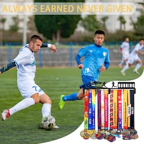 Melhore suas conquistas com nosso cabide personalizado para exibição de medalhas. Mostre orgulhosamente suas medalhas suadas com estilo! Mostre seu orgulho: você trabalhou duro para ganhar suas medalhas, por que não exibi-las com orgulho? Nosso cabide de exibição de medalhas é a maneira perfeita de mostrar suas conquistas e motivar-se a ir mais longe. Seja você um corredor, um ginasta, um jogador de futebol ou qualquer outro amante de esportes, você merece celebrar suas conquistas com estilo. Material de alta qualidade: nosso cabide de exibição de medalhas é feito de aço inoxidável premium, durável, resistente e resistente à ferrugem e corrosão. Ao contrário dos cabides de madeira, acrílico ou ferro, nosso cabide não dobra, quebra ou danifica suas medalhas. Pode conter até 60 medalhas, dependendo do tamanho da fita, e tem uma superfície preta fosca que adiciona elegância e sofisticação à sua parede. Fácil de instalar e usar: nosso cabide de exibição de medalhas vem com todo o hardware necessário e instruções para montá-lo na sua parede em minutos. Você só precisa de uma furadeira, um nível e uma chave de fenda. O cabide tem 6 furos para fixação segura e 12 barras de suspensão para facilitar a colocação de suas medalhas. Você pode organizar suas medalhas por evento, data, cor ou qualquer maneira que desejar. IDEIA DE PRESENTE PERFEITA: Procurando um presente especial para um entusiasta de esportes em sua vida? Não procure mais, nosso cabide de exibição de medalhas. Vem em uma linda caixa de presente que o torna pronto para oferecer. É um presente atencioso e significativo para qualquer ocasião, como aniversário, formatura, Natal ou apenas porque. Seu ente querido apreciará este gesto e apreciará este cabide por muitos anos. - Organização de medalhas sem esforço – comporta até 60 medalhas, acomodando vários tamanhos de fita, com uma capacidade máxima de 18 kg. Seu design minimalista complementa perfeitamente qualquer decoração de parede, servindo como um lembrete constante de suas conquistas e levando você a alcançar alturas maiores. O elegante acabamento preto fosco adiciona um ar de elegância e sofisticação à sua parede, tornando-o perfeito para corridas, competições e todas as atividades físicas. - Seguro e durável – sem bordas afiadas, feito de aço inoxidável premium, nosso suporte de metal de fita personalizada garante durabilidade, robustez e resistência à ferrugem e corrosão. Ao contrário dos cabides de madeira, acrílico ou ferro, as placas de metal cortadas a laser do nosso porta-medalhas garantem que não dobram, quebrarão ou danificarão suas medalhas. Sem bordas afiadas; nossas bordas são lixadas e completamente seguras. - Comemore suas conquistas - você trabalhou duro para ganhar suas medalhas - agora as exiba com orgulho. Nosso cabide de exibição de medalhas oferece uma maneira elegante de mostrar suas conquistas e inspirar você a se aventurar ainda mais. Seja você um atleta, estudante ou entusiasta de esportes, nosso porta-medalhas permite que você celebre suas conquistas com estilo. - Inspiração no design: nosso suporte de exibição de medalhas apresenta um design inspirador que ressoa com seus objetivos e sonhos, tornando-o ideal para crianças, atletas e entusiastas de esportes. Esta mensagem poderosa serve como uma motivação constante para perseverar e nunca desistir de suas ambições. - Instalação simples: pendure suas medalhas sem esforço com nosso cabide de exibição, que facilmente aparafusa na parede usando os parafusos, âncoras e amortecedores incluídos. Sua estrutura robusta de aço garante que suas medalhas permaneçam seguras e intactas, o que a torna a escolha ideal para atletas com coleções consideráveis. - Empresa familiar - Dedicada a fornecer produtos da mais alta qualidade, a Goutoports é uma empresa familiar confiável. Se você não estiver completamente satisfeito com o rack de exibição de cabide de fita de prêmios, com o fabricante dentro de 30 dias após receber seu pedido para um serviço pós-venda. - Perguntas e respostas: Quais são as características do nosso porta-medalhas? Custo-benefício, bom custo-benefício, fácil de instalar, sem bordas afiadas, excelente qualidade e durabilidade, tamanho grande para pendurar mais medalhas, personalizado e personalizável. Este é o melhor cabide de exibição de medalhas deste ano para crianças, presente para pais, corredores ávidos e atletas