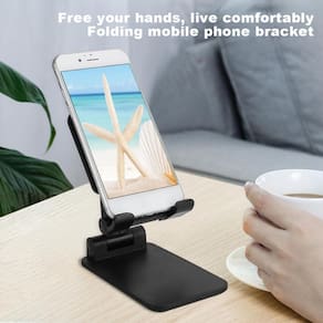Acabamento fino, altura ajustável e ângulo.2. Livre suas mãos, viver confortavelmente, suporte de telefone móvel dobrável.3. Fabricação , base estável e não solto.4. Feito de liga de alumínio de alta qualidade e material abs, resistente, durável e longa vida útil.5. Tamanho pequeno e leve, fácil de transportar e armazenar, conveniente de usar.