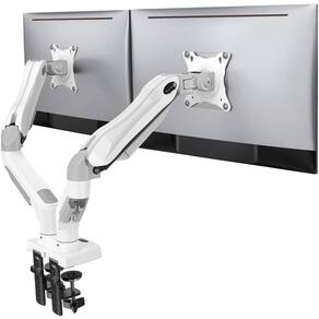 suporte para monitor duplo — cabe em seus monitores e mesas — Cada braço pode acomodar monitores planos/curvos de 13 a 30 polegadas com padrão Vesa de 75 x 75 e 100 x 100; cada braço comporta 4,4 libras a 19,8 libras. Sobre a mesa, recomendamos desktops de madeira e a espessura da mesa compatível é de 0,59"-3,54". - Mantenha seu monitor no lugar - O HNDS6 apresenta um design estrutural exclusivo que oferece uma estrutura de produto mais razoável em comparação com outros suportes de dobradiça, melhorando significativamente a estabilidade. Ele também fornece dois métodos de instalação de mesa: braçadeira em C ou base isolante. Ambas as opções garantem uma fixação estável e segura para seu monitor. Na HUANUO, sempre nos concentramos em melhorar a resistência e a estabilidade dos suportes de monitor duplo para desktop. - Otimize sua visão e uma ampla amplitude de movimento - Não se preocupe mais em girar o ângulo ajustando o parafuso! O braço de mesa com mola a gás faz com que ele se ajuste com uma ação tão suave. O suporte do monitor permite que seu monitor gire, incline e gire. Vá e defina livremente seus monitores para ângulos e posições personalizados. - O conforto é fundamental - Nosso braço de monitor duplo para mesa eleva os monitores ao nível dos olhos, melhorando a postura, aliviando a tensão no pescoço e nos ombros e aumentando os níveis de produtividade. O design de movimento total com altura ajustável permite que você trabalhe em uma posição ergonômica mais confortável. - Fácil de instalar - Inclui manual de instruções e hardware de montagem padrão para instalação. O suporte de monitor duplo também foi projetado com uma função de gerenciamento de cabos para direcionar os fios para uma aparência mais limpa e simplificada. A montagem de seus monitores pode liberar 50% a mais de espaço na mesa e reduzir a desordem.