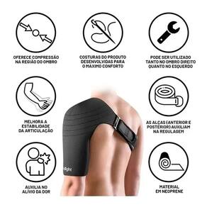 Para utiliza-la da forma correta basta regular a alça que vai pelas costas, vestir a peça no ombro lesionado, passar a alça da frente pelo passador, e dar a tensão posicionando o fechamento.
