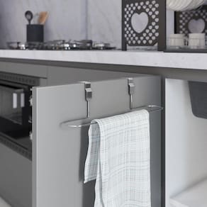O acabamento cromado do Suporte de Pano de Louças com Encaixe para Armário é o responsável por dar o brilho e a proteção que você encontra em toda nossa linha de produtos em aramado. Ele está presente na camada que envolve todo o aço do produto, garantindo maior proteção contra a água e permitindo que você faça a limpeza do mesmo com mais facilidade, além disso o cromado dificulta o trabalho de proliferação das bactérias provenientes da água e eventual sujeira.