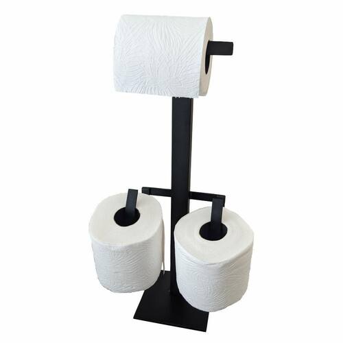 Suporte De Papel Higiênico De Chão Triplo Preto Fosco Porta papel higiênico de chão é prático, dispensa o uso de ferramentas para instalar, evitando transtornos, furos nas paredes e sujeiras.
