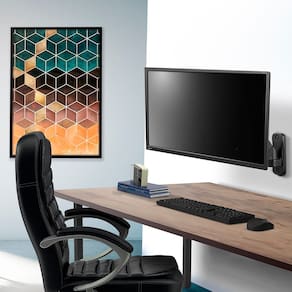 O F410 da ELG, é um suporte multiarticulado de parede, compatível com TVs e monitores de 17" a 34" e com peso entre 2kg a 9kg e que permitam instalação na traseira de monitores ou TVs conforme os padrões de fixação VESA 75x75mm ou 100x100mm (HxV). *O que é VESA? É a distância horizontal e vertical entre centros dos furos de fixação, localizados na traseira do monitor.Prático, ergonômico e com alto padrão de acabamento, o F410 já vem montado e é fabricado em alumínio injetado e polímero de alta resistência. Possui capas plásticas para passagem e organização dos cabos e braço articulado com sistema de pistão a gás, o que possibilita tanto a inclinação lateral, quanto o ajuste de altura de 250mm (altura do centro do monitor até a base inferior do suporte) de TVs/monitores com peso entre 2 a 9 kg. Suas articulações permitem ajustes leves e precisos. Para proporcionar um ângulo de visão ideal e confortável, também é possível girar a tela nas posições retrato ou paisagem (vertical ou horizontal) e ainda, aproximar e afastar em relação à parede, de acordo com a necessidade.