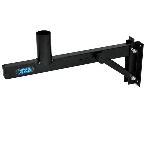 Suporte para caixa de som com 4 regulagens de inclinação vertical (0º, 10º, 20º e 30º), permite rotação da caixa.