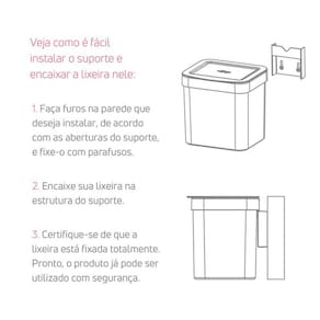 Veja como é fácil instalar o suporte e encaixar a lixeira nele: