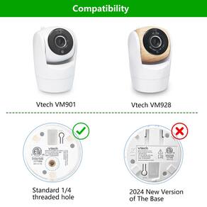 - Compatível com Vtech VM901, VM928, VM919HD e outras câmeras para bebês com orifício rosqueado de 1/4 (Nota: compatível apenas com a interface 1/4, não com as novas versões do VM901 e VM928)